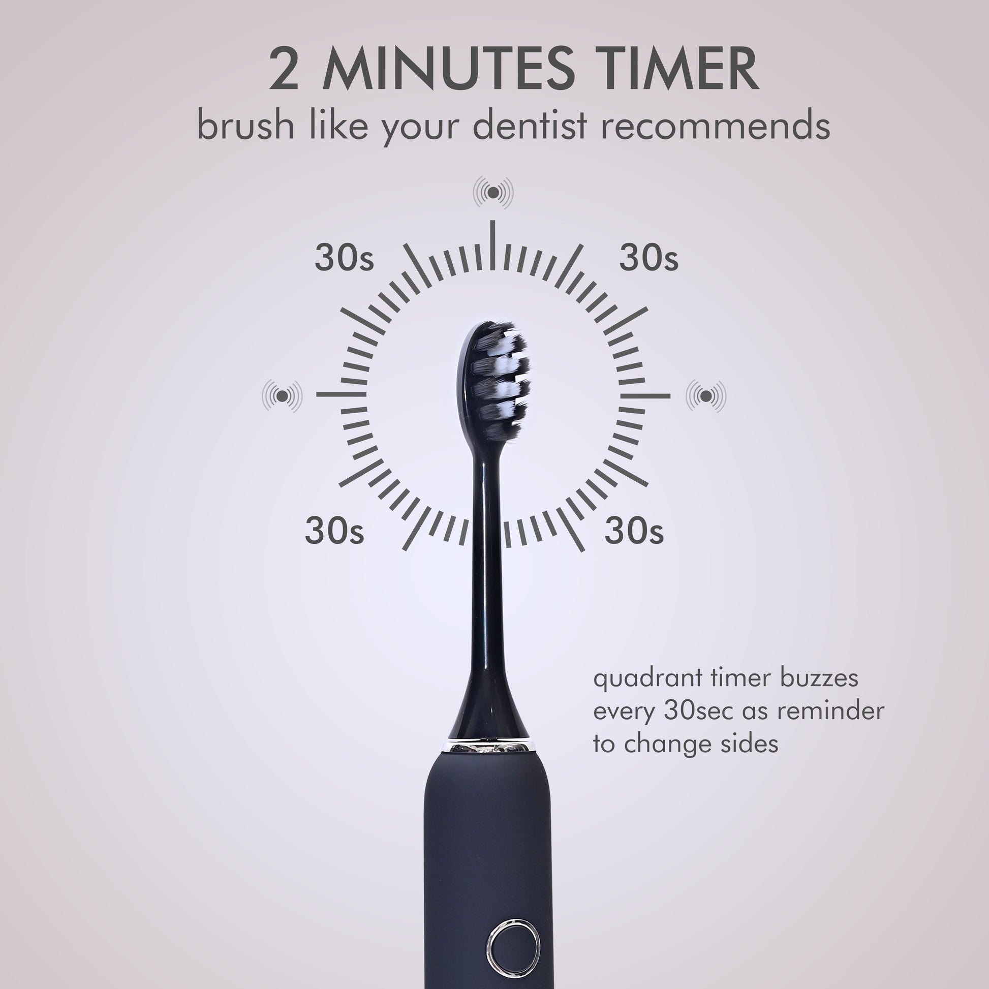 Transform your daily oral care routine with this advanced smart electric toothbrush featuring 5 specialised cleaning modes - Clean, White, Polish, Milder, and Sensitive. The powerful sonic motor delivers 40,000 VPM for effective plaque removal and whitening, while 3 adjustable strength settings (Softer, Standard, Powerful) let you personalise your brushing experience. Perfect for all users, from beginners to those with sensitive gums. The 30-second reminder helps maintain proper brushing zones, while the IPX7 waterproof rating ensures safe use in wet conditions.